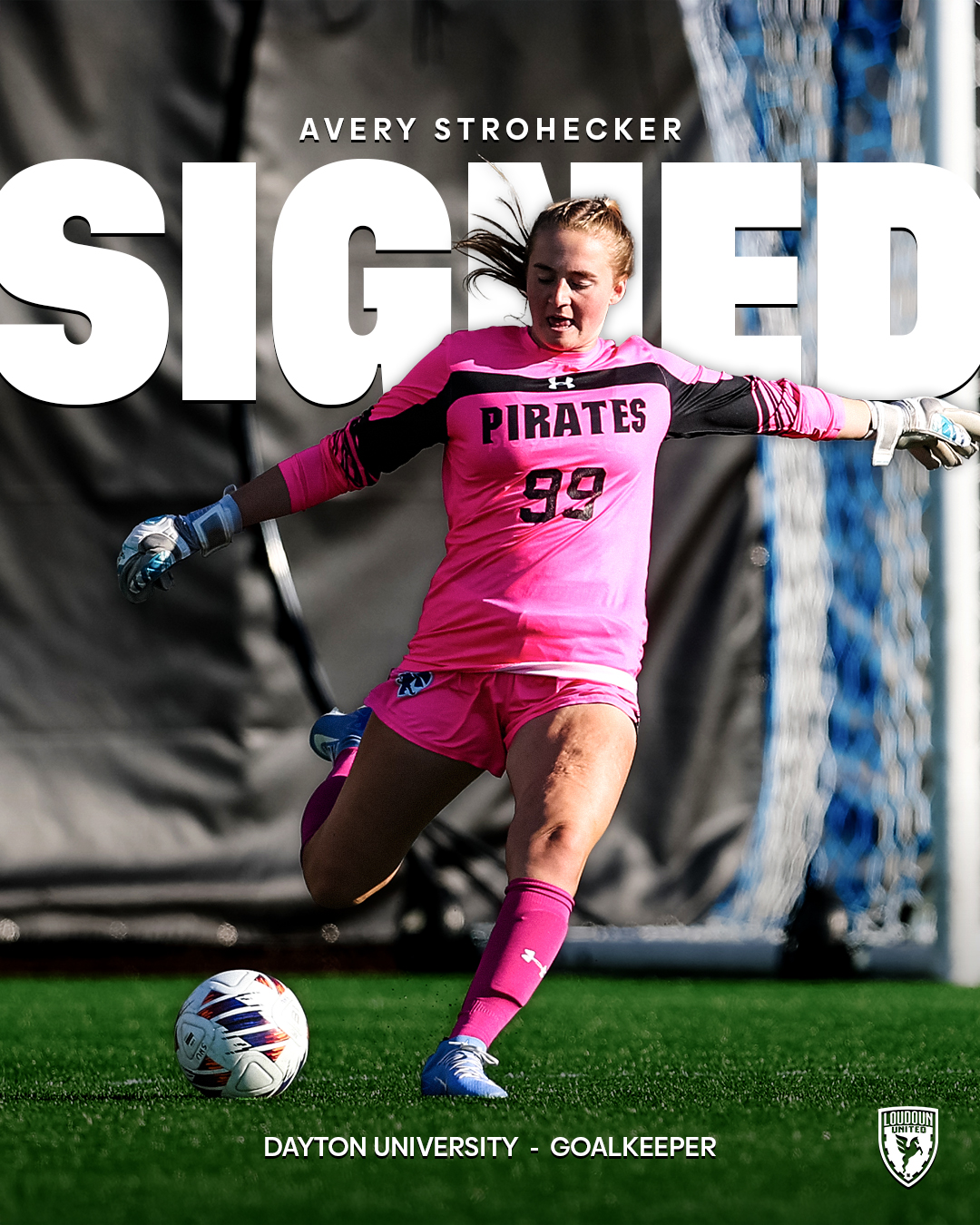 Strohecker joins the club following her transfer to the University of Dayton after beginning her collegiate career at Seton Hall University. During her time with the Pirates, Strohecker appeared in 17 matches, recording 40 saves and posting a 0.800 save percentage, including a career-high seven saves against Providence. Prior to her collegiate career, Strohecker developed locally with TSJ FC Virginia and Freedom High School, where she captained the program and earned all-district, all-league, and all-met honors. She set a school record with 25 saves in a single match and finished her senior season with 82 saves and a 0.82 goals against average. A U-17 National Champion with TSJ FC Virginia and a three-time Mid-Atlantic Talent ID participant, Strohecker brings both high-level experience and strong local ties to Loudoun’s squad.